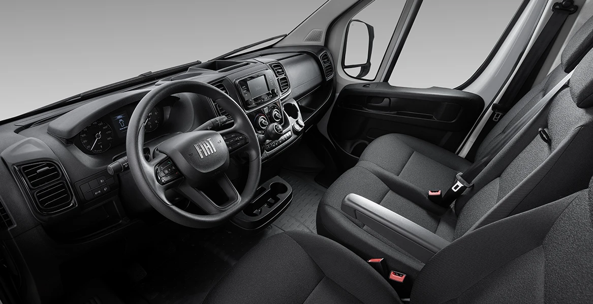 O Novo Fiat Ducato vem equipado com assistente de partida em rampas, que evita que o veículo recue em subidas, e controle de estabilidade, que garante ainda mais segurança nas curvas e manobras com carga. O modelo agora também conta com nível de ruído reduzido, ideal para manter o foco tanto na cidade quanto na estrada.