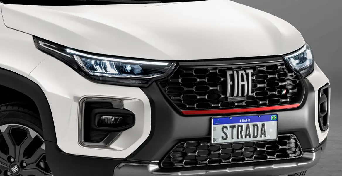 A nova Strada é a melhor do segmento em altura do solo (214 mm) e ângulos de entrada (24°) e saída (28°).